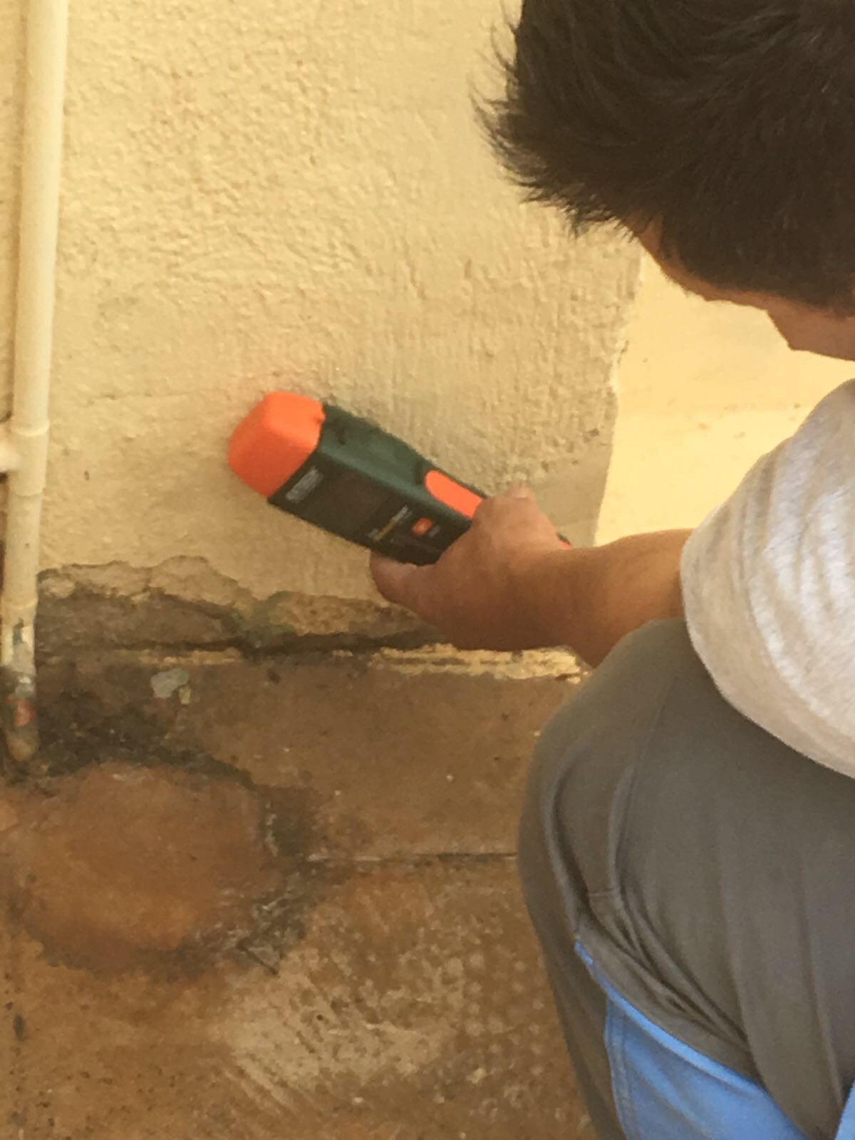 Localización de fuga de agua, reparación instalando arquetas de registro, hormigón impreso y trabajos de pintura en siniestro atendido en Castellón.