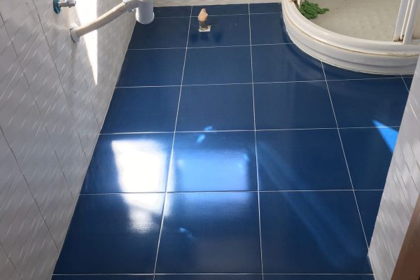 Colocación de pavimento de gres porcelánico en baño.