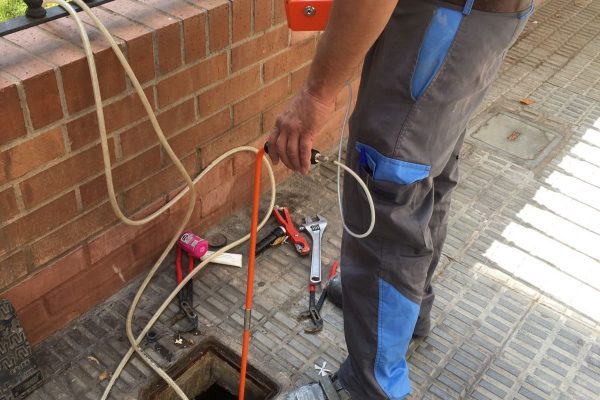 En este trabajo localizamos la avería en una bajante gracias a la utilización de una cámara de inspección de tuberías que posee una gran pantalla táctil desmontable.