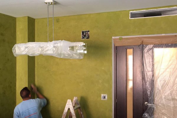 Realización de estuco veneciano en siniestro atendido en Burriana. Podemos realizar cualquier trabajo de pintura decorativa.